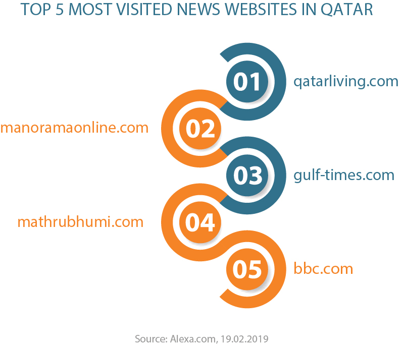 An analysis of most visited websites in Qatar, with the data coming from Alexa (the top industry provider for estimates on online readership), reveals that out of TOP 10 news websites that are visited by Qatar based users, only 2 focus on Qatar related coverage – and qatarliving.com isn’t primarily a news portal to be precise.